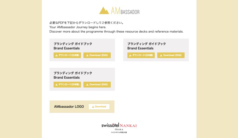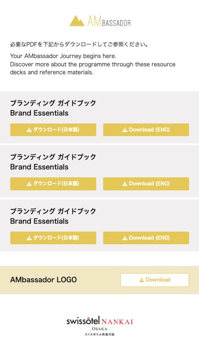 社内研修であるAMbassadorプログラムの受講者が資料をダウンロードするためのページ